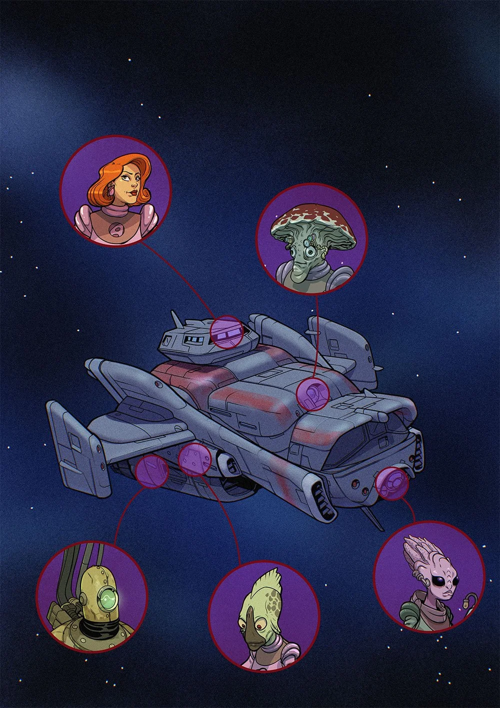 Você ilustrou o Interestellar Adventures, um novo jogo de tabuleiro de ficção científica no estilo de escape no Kickstarter. Você pode nos contar um pouco sobre isso?