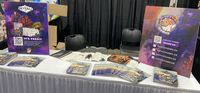 Outros editores podem ter Banners enormes com obras de arte de um jogo, mas Oink é o único editor que apresenta seus jogos como obras de arte – que é uma ótima idéia, pois os transeuntes pararam continuamente para conferir as exibições. (Talvez eu esteja fazendo muita apresentação, uma vez que muitos editores exibem jogos em casos de vidro, mas parece qualitativamente diferente, semelhante a uma exibição de artefatos de museu.)