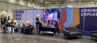 ▪️ Graças a outro fornecedor que recebeu sofás desnecessários e os repassou para nós, a parte de trás do estande da BGG foi transformada em um ponto de encontro para quem precisa de uma pausa na caminhada pelos corredores, com um Contagem regressiva do GeekBuzz correndo na tela para os transeuntes conferirem. Idealmente, a contagem de votos será aumentada em pouco tempo para dar uma representação mais precisa do que está agitando o show…