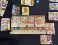 Se você não esgotar sua inspiração em um turno, você pode depositá-la no ateliê, usando-a posteriormente para limpar uma fileira de cartas, remover uma carta do seu baralho permanentemente ou evitar uma dificuldade, como fiz no turno acima, já que me faltou expressão suficiente para evitar ganhar outra dificuldade. (Você precisa fazer uma cara boa para manter seu hábito de beber em segredo.)