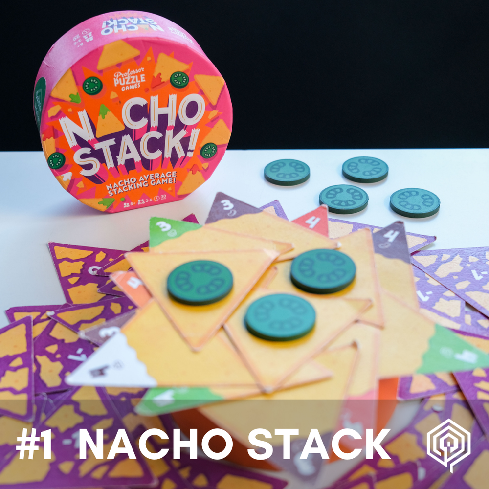 Pilha de Nacho provou ser quase tão popular quanto nossa deliciosa tigela de nacho desde que entrou em nossa biblioteca, e isso realmente quer dizer alguma coisa! Este pequeno jogo de destreza faz muito com poucos ingredientes, como fazem muitos dos melhores pratos. Na primeira fase do jogo, pegue as fatias de nacho da mesa e coloque-as na pilha central equilibrada na caixa, tomando cuidado para que os nachos com a mesma cobertura não se toquem. Então, na fase dois, jogue os dados para decidir qual cor remover da pilha e tente ganhar mais pontos com os nachos que você reivindicar. Muito divertido com regras mínimas para 2 a 6 jogadores com mais de 8 anos.