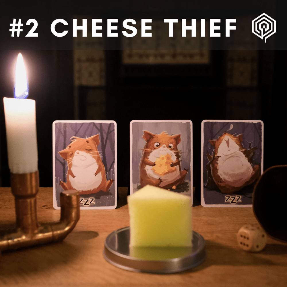 Foi na noite anterior ao Natal e por toda a casa não havia nenhuma criatura se mexendo, exceto o Ladrão de Queijo!Este jogo sobre ratinhos famintos é a introdução perfeita ao género de papéis ocultos, ideal para aqueles que sentem que nunca é cedo para aprender a mentir aos seus entes queridos 😉 No início do jogo, todos os jogadores recebem uma carta com o seu papel – ou um ratinho bem comportado e sonolento, ou o travesso Ladrão de Queijo. Com o queijo do café da manhã colocado em segurança no meio da mesa, todos os ratos vão dormir, sendo acordados em diversos momentos da noite para verificar o queijo. Em algum momento, o queijo desaparecerá… Será que os ratos conseguirão reunir suas informações para descobrir quem roubou seu café da manhã? Adoráveis blefes e deduções de apostas baixas para 4 a 8 jogadores com mais de 8 anos.